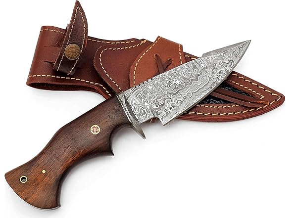 Sabaruh DSK-119 Custom Handmade Damascus Steel 10 inches Walnut Wood Handle Fixed Blade Hunting/Survival Hand forge/Outdoor Skinning Knife