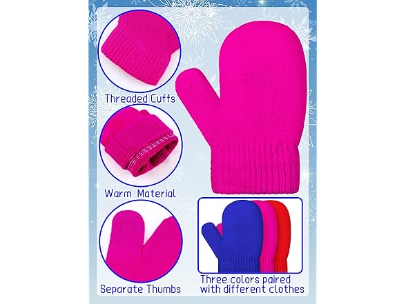 SATINIOR 6 Pairs Toddler Knit Mittens