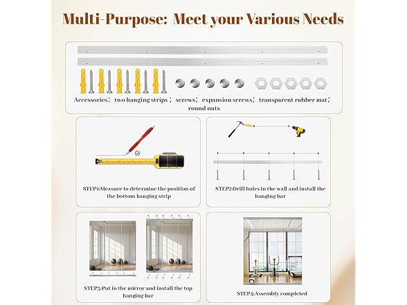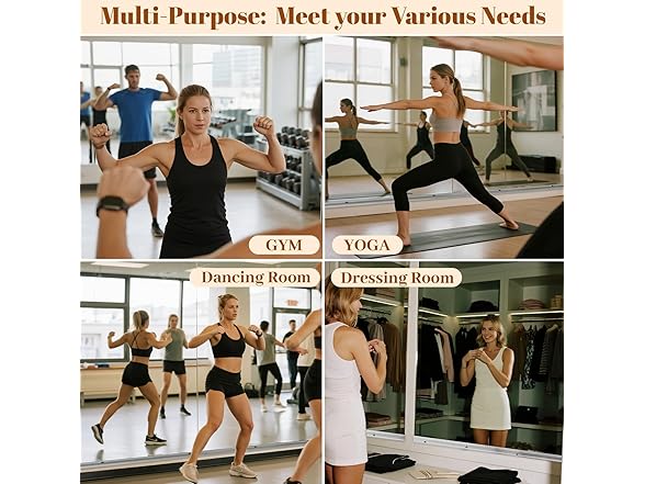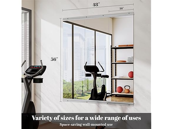 VooBang Home Gym Mirror - 3 PCS 16×56 inches, Large Frameless Wall Mounted Full Length Body Mirror