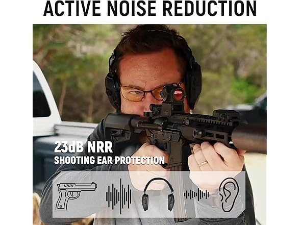 - Electronic Active Noise Cancellation:Our shooting ear protection deliver noise reduction 23dB, ensuring an impressive hearing protection for gun shooters at the range. Additionally, our ear protection stand out as an excellent choice for professionals engaged in other high-noise activities such as lawn mowing, forestry work, and more. Whether you're on the shooting range or tackling in noisy environments up to 82dB, our shooting earmuffs provide unparalleled protection and comfort.