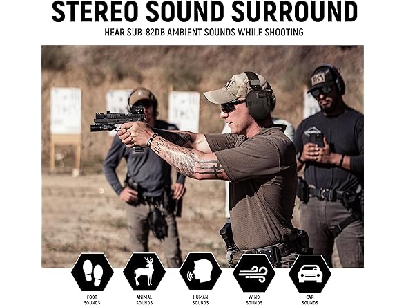 - Precision Sound Localization: Clear audio in shooting ranges and other training environments is crucial for improving shooting accuracy and ensuring personal safety. Our shooting earmuffs feature advanced stereo dual-channel technology, providing exceptional hearing protection and precise sound localization. This helps you accurately judge the direction of sounds and identify targets more effectively.