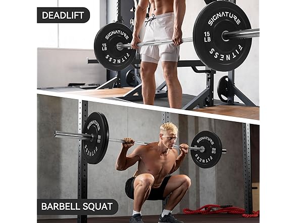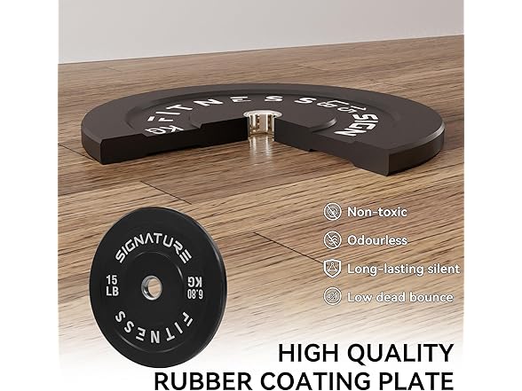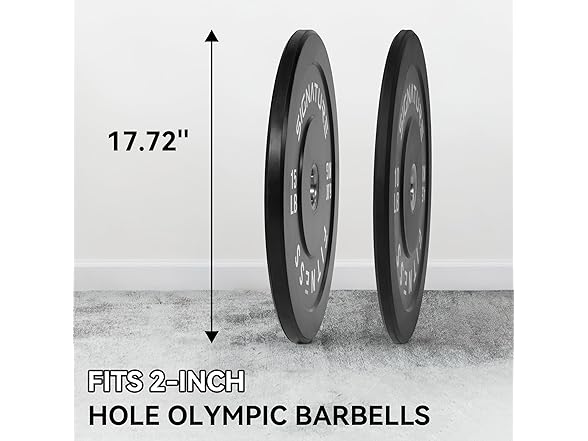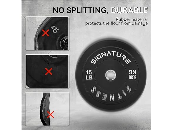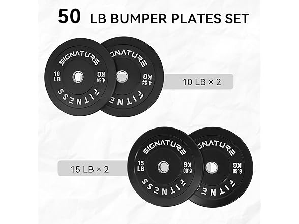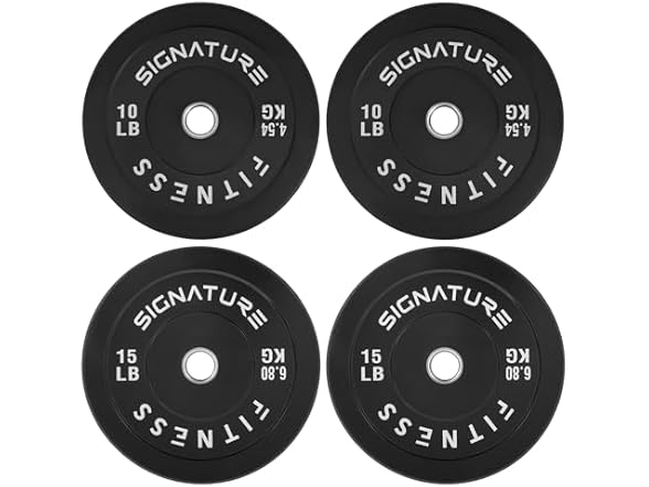 Signature Fitness Fitvids 2" Olympic Bumper Plate Weight Plates with Steel Hub – 50-Pound Set – Set: 50lbs – Black