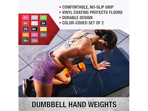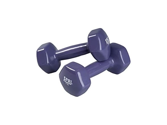 SPRI Dumbbells Hand Weights Set of 2 - 7 lb Vinyl Coated Exercise & Fitness Dumbbell for Home Gym Equipment Workouts Strength Training Free Weights for Women, Men , (G) Purple