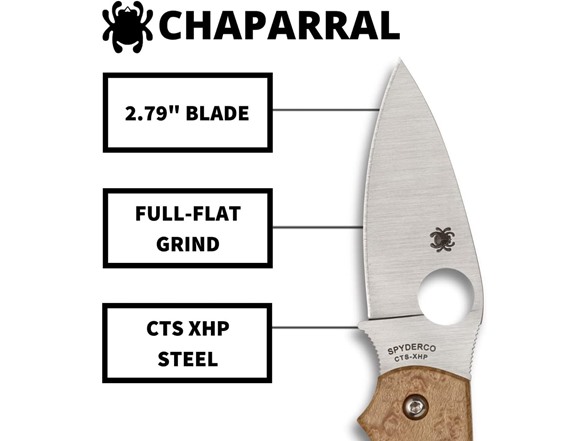 The immensely popular Chaparral series celebrates a diverse range of handle materials by incorporating them into the same, sleek gentleman's folder format. This stunning expression of the Chaparral showcases genuine birdseye maple scales and the dramatic grain pattern characteristic of this material. All other features are consistent with the Chaparral platform, including a full-flat-ground CTS XHP stainless steel blade, stainless steel liners, a sturdy back lock mechanism, and a reversible deep-pocket wire clip.