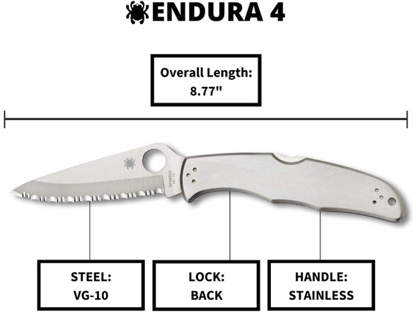 - Trusted EDC Design - Refined over four generations, the Endura 4 continues its legacy as a proven everyday carry knife with a durable stainless steel handle and iconic design.