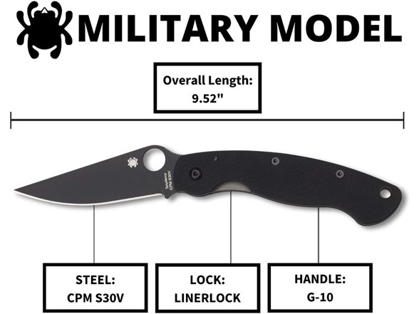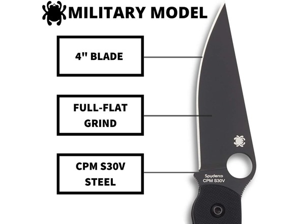 Spyderco Military Model Signature USA-Made Knife with 4" CPM S30V Black Steel Blade and Durable Black G-10 Handle - PlainEdge - C36GPBK