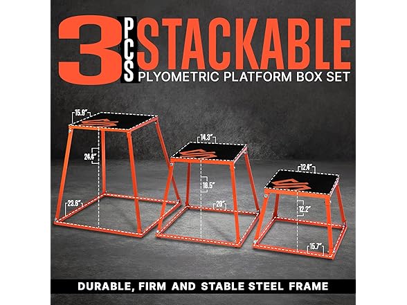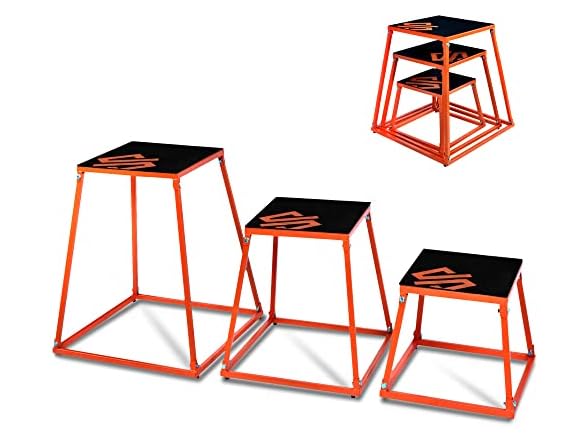 SQUATZ 3 Pcs Plyometric Platform Box - Small, Medium, Large Sized Platform Boxes Covered with Anti-Skid Rubber for Home Gym Training, Comes with 3 Platform Boxes - Firm, Durable, and Stable Frame , Black