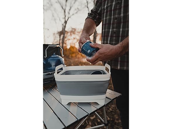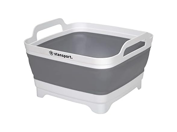 Keep your camp site clean the Stansport® Collapsible Camp Sink. Two carry handles allow for transportation that’s easy on the hands. The sink folds flat for travel to and from your campsite. Four raised feet and a sink plug means mucky dishwater can drain out. In addition to dirty dishes, this basin can hold dirty clothes, or be filled with ice for storing cold beverages.