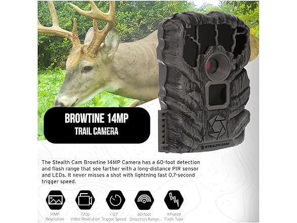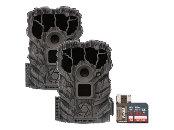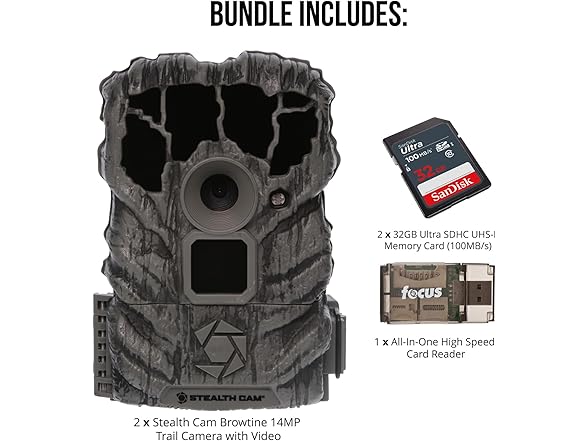 Stealth Cam Browtine 14MP Trail Camera Bundle with 32GB Memory Card (2-Pack) and Card Reader (2-Pack) (5 Items)