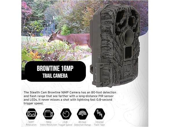 Stealth Cam Browtine 16MP, Durable, 60 Feet Infrared Detection Range, and Burst Mode Trail Camera Bundle with High Speed USB 2.0 Card Reader, and 32GB Ultra SDHC UHS-I Memory Card (10-Pack)