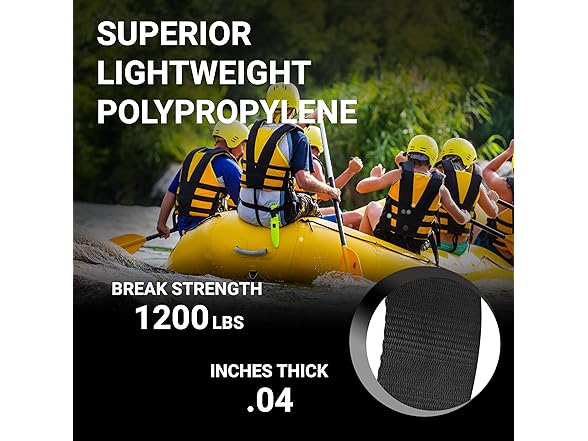 - FADE RESISTANT- Polypropylene webbing is made from thermoplastic resins. The material is resistant to moisture, acids, oil and grease. It even has some ability to float on water.