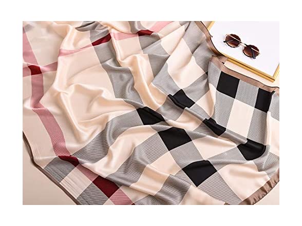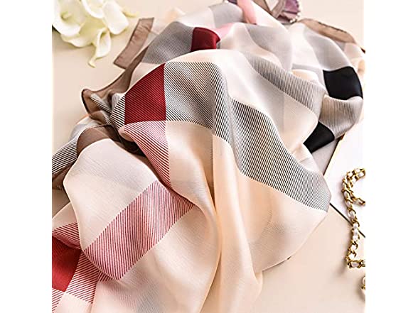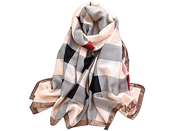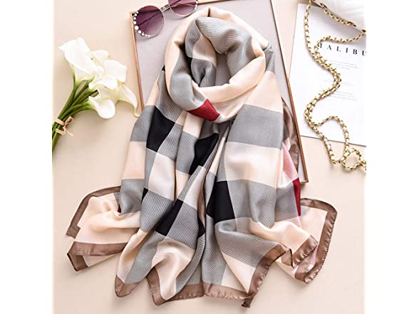 First Choose 100% Silk Feeling Women Large Long Scarf Shawl Check Style Sunscreen Shawls Wraps - Lightweight Pattern(Lattice-beige)
