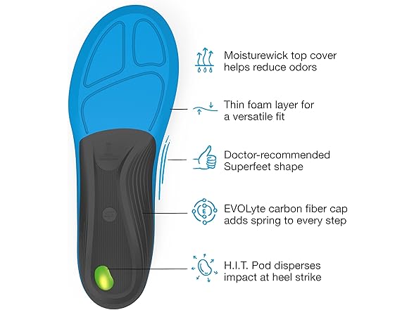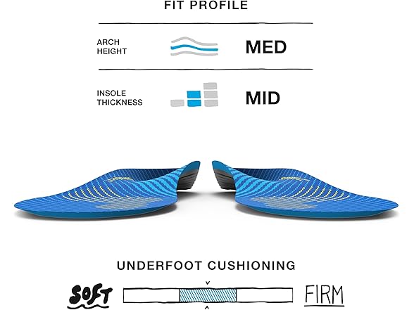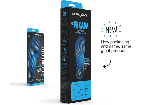 Superfeet Run Support Medium Arch Insoles - Trim-to-Fit Low to Medium Arch Support Inserts for Running Shoes - Professional Grade (Pick Size)