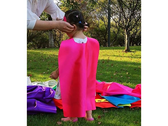 - INCLUDES: 7 capes + 7 masks. The Capes are made from satin without printing any logo. It feels silky and comfortable. The mask with elastic ensures a snug but not too tight fit