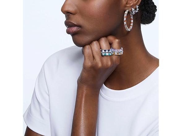 - Uniquely elegant: The tessellating triangle-cut crystals in the shape of a classic hoop, make a bold fashion statement that turns heads and catches hearts