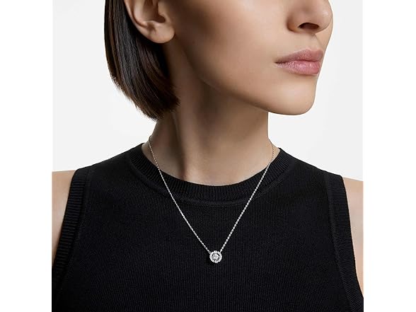 Swarovski Sparkling Dance Necklace Jewelry Collection, Rhodium Finish, Blue Crystals, Clear Crystals
