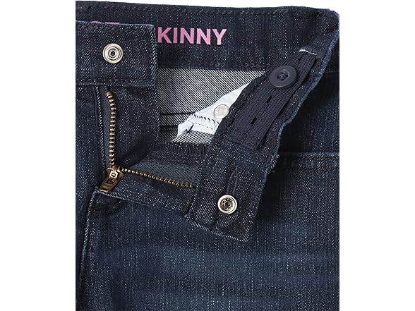 - A sleek fitted silhouette with 5-pocket styling, inner adjustable waist tabs and tagless label; snap closure with zipper fly for sizes 4-6X/7 and button closure with zipper fly for sizes 8-16