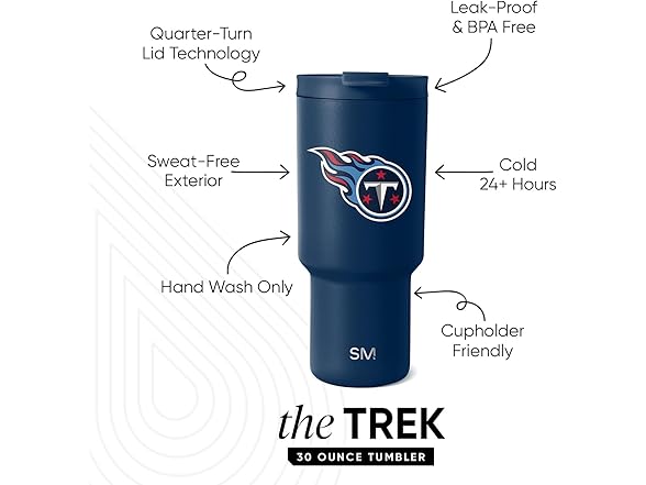 Simple Modern Officially Licensed NFL Tennessee Titans 30 oz Tumbler with Flip Lid and Straw | Insulated Cup Stainless Steel | Gifts for Men Women | Trek Collection | Tennessee Titans