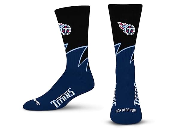 For Bare Feet NFL TENNESSEE TITANS Black Wave Crew Sock Team Color LARGE