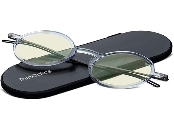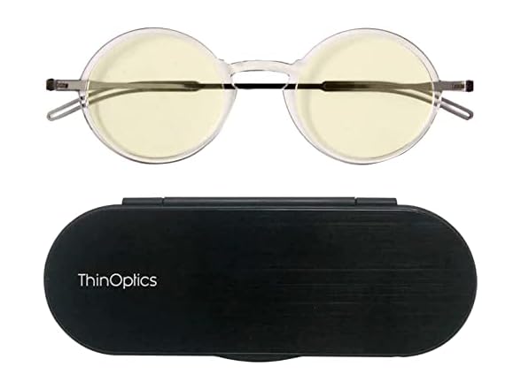 ThinOptics Manhattan Blue Light Blocking Glasses Reading, Round/Clear, 44 mm + 1.5