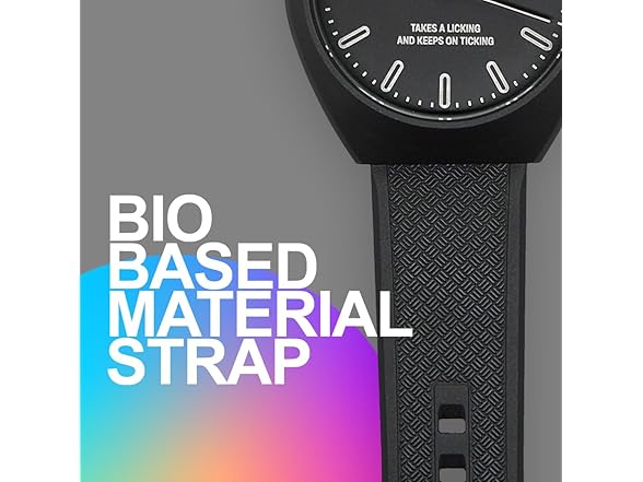 - 8 Inch Sustainable Black Strap: The textured strap is crafted from bio-based resin, offering a versatile style that takes less from our planet and leaves less behind.