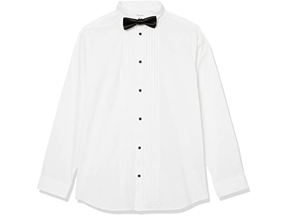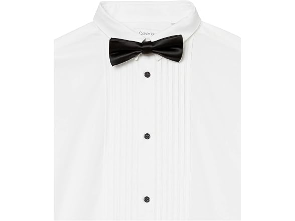 Calvin Klein Boys Long Sleeve Tuxedo Dress Shirt with Bow Tie, Button-Down Style with Classic Pleated Bib, Includes Matching Hanky, White, 14-16 Husky
