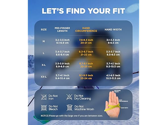- OUR CARE NEVER COOLS DOWN - Our Winter Gloves available in 42 sizes for choice from M to L, please check in our size chart before purchase. We recommend hand washing only, avoid ironing or tumble drying.