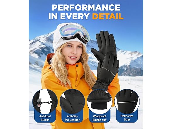 - PERFECTED DOWN TO THE STITCH - The stretchable pu outer and built-in elastic wrist strap create a snug fit for your hand, letting you enjoy all winter activities like driving, cycling, hiking and so on. Besides, each pair of ski gloves features anti-loss buckles for easy storage and reflective strips for safer night rides. Finely stitched by skilled craftsmen, these winter gloves women man are durable, refined which make them an ideal christmas/birthday gift for father/mother/friends.