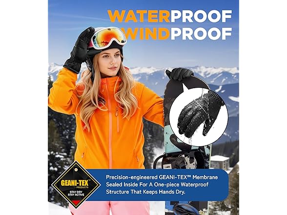 - WHERE RAIN AND WIND CAN’T REACH - Featuring our proprietary GEANI-TEX tech, our waterproof layer of our waterproof gloves provides blocks water out, while wicking inner moisture to keep your hands warm and dry. Beyond that, the PU shell with microporous structure forms a robust barrier against cold wind. To complete the protection, the extended elastic cuffs of warm gloves goes completely over your sleeve which block drafts at the wrists.