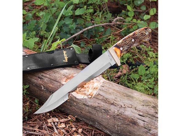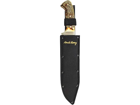 Uncle Henry 181UH Bowie Knife with 10inch High Carbon Stainless Steel Fixed Blade, Full Tang, Polyester Belt Sheath, and Classic Staglon Handle for Hunting, Survival, Bushcraft, Camping, and Outdoors