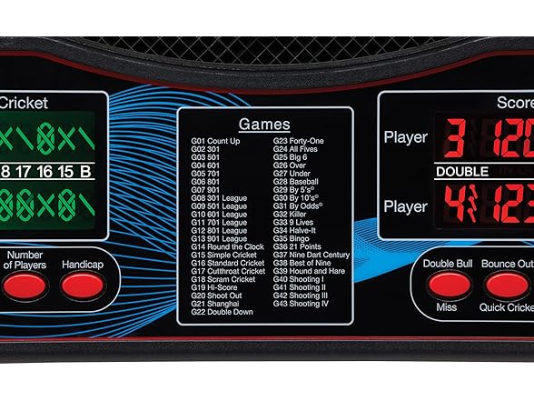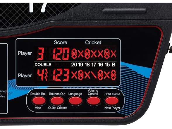 - Dual jumbo LCD displays: Two large color screens show scores and Cricket statistics for all players simultaneously; easy to read from the throw line during multiplayer matches