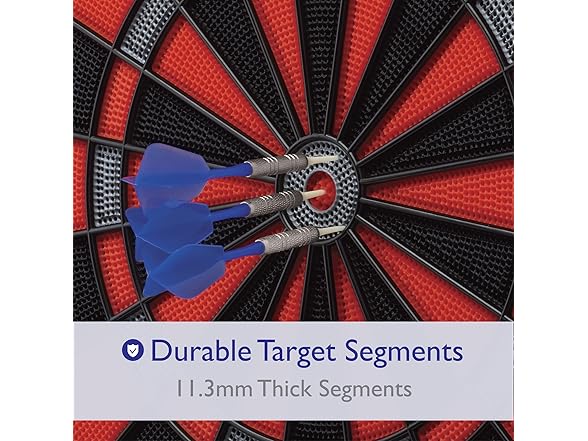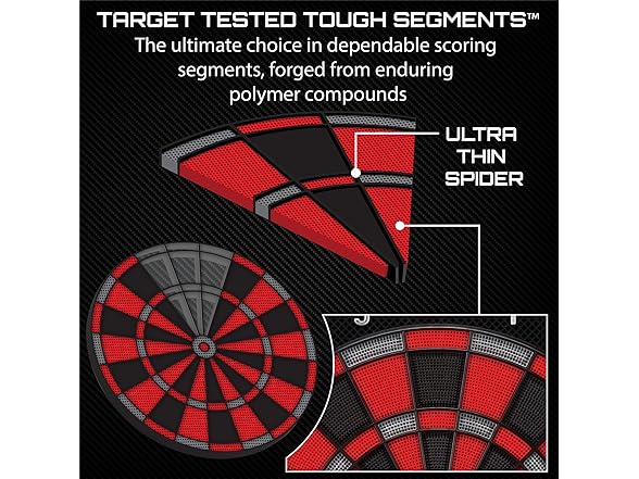 - Regulation 15.5 in target: Durable nylon segments with precision-engineered concave holes lock in soft tip darts; ultra-thin spider and extended catch ring reduce bounce-outs