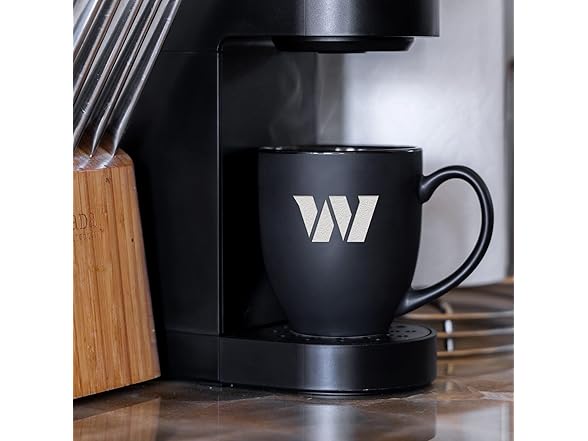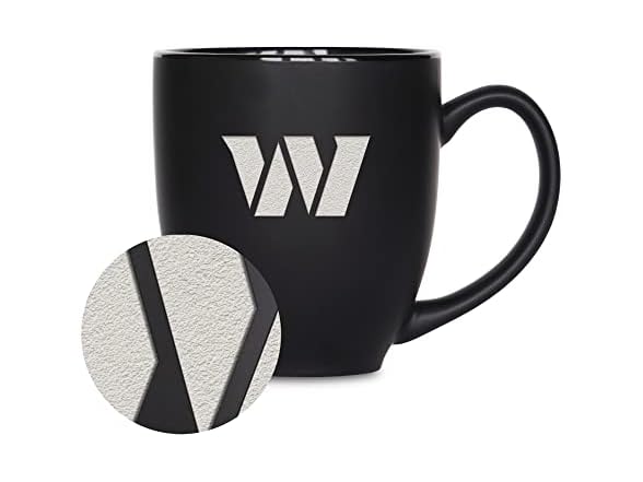 Rico Industries NFL Football Washington Commanders Main 15oz Laser Engraved Matte Black Ceramic Bistro Mug - For Hot or Cold Drinks
