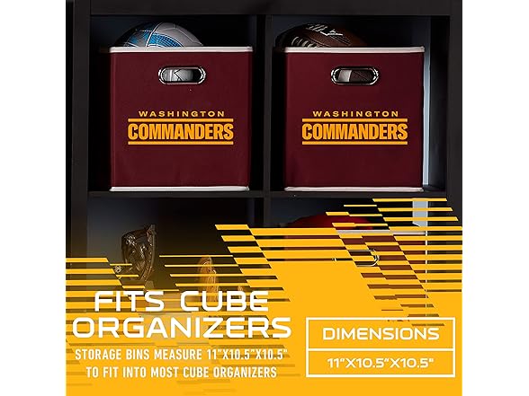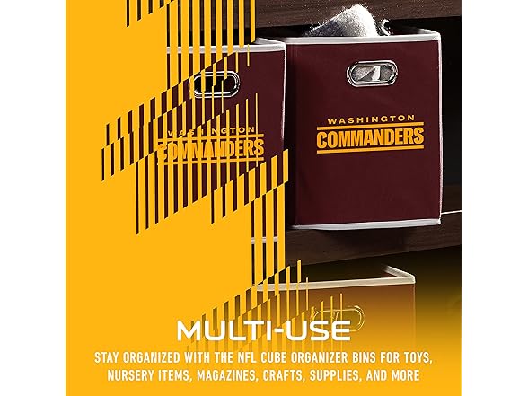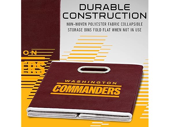 Franklin Sports Washington Commanders NFL Storage Bin - Collapsible Cube Container + Basket - NFL Office, Bedroom + Living Room Décor - Folding Storage Bin for Football Fans - 11"x11"