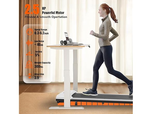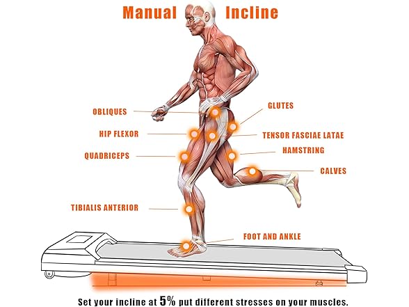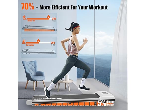 - 5% Adjustable Incline for 70%+ more workout efficiency: Our walking pad treadmill offers a 5% adjustable incline option, perfect for enhancing your workout's intensity to improve fitness levels, whether walking, jogging, or running. Its robust design supports over 300 lbs weight capacity for more than 70% efficiency of calorie consumption.