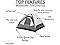 - Family Camping Design:The perfect camping accessory to go with your camping gear. This Weekender tent includes 1 large door, 2-pole quick-clip design for easy setup, rainfly with front and back awning, and interior storage pockets and power port.