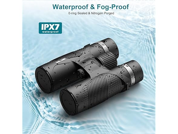 - 【Waterproof and Fogproof】 Our IPX7 waterproof binoculars can resist water, can be used even in a heavy rain for a long time or soaked in the water. stands up to the toughest weather conditions.They're also prevent internal fogging of the lenses.Even if you encounter bad weather outdoors, you don't need to worry about it.