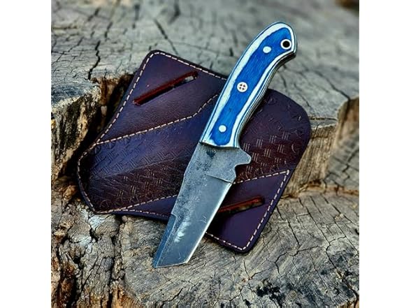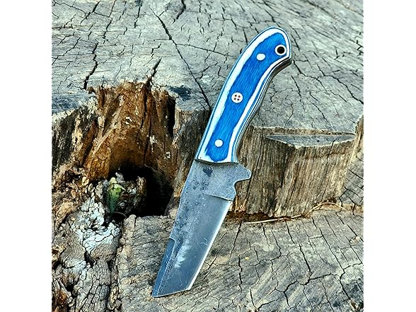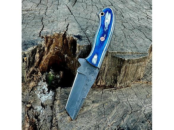 - Overall Length: 7.5" inches Blade length: 3.5" inches Handle length: 4" inches Blade Material Handmade 1095 Steel Handle Material Blue & white Walnut Wood Superior 1095 Steel Blade: Crafted from high-quality 1095 steel, this 7.5-inch blade offers exceptional sharpness, durability, and a stunning, unique pattern, making it a standout tool for serious users.