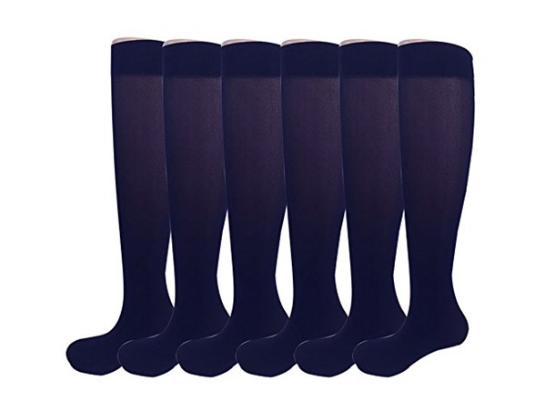 (6 pairs) Women's Opaque Spandex Trouser Knee High Socks, Size 9-11-navy