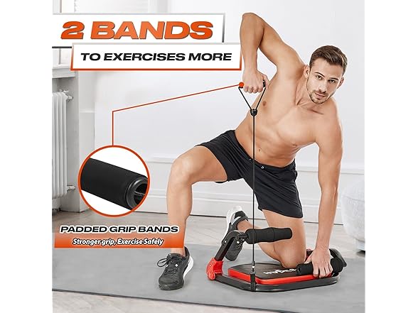 - ADJUSTABLE RESISTANCE LEVELS - With 2 resistance bands included, this abdominal exercise machine allows you to customize your workout intensity based on your fitness level and goals.