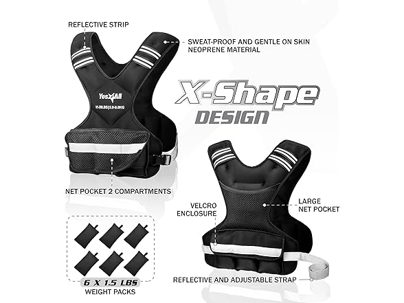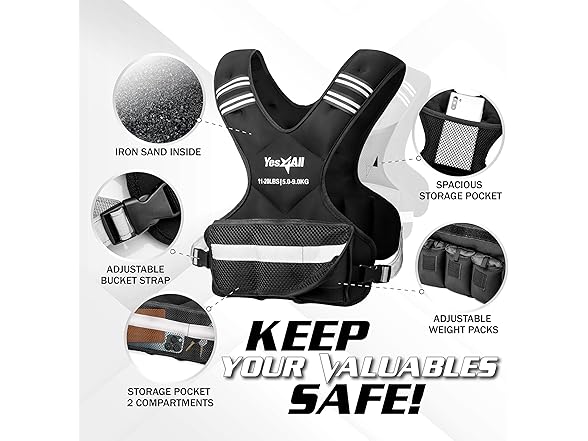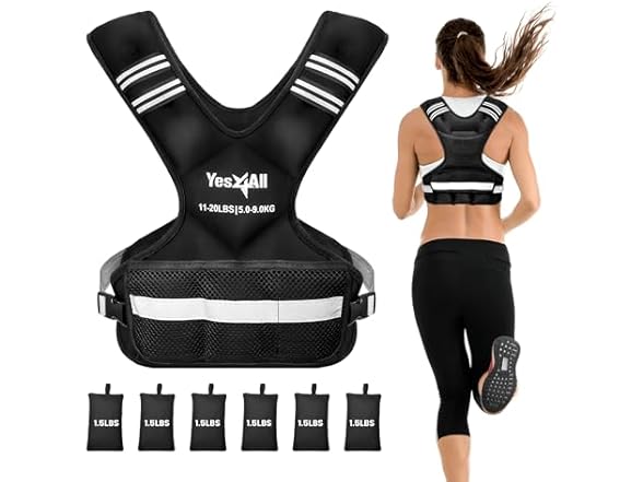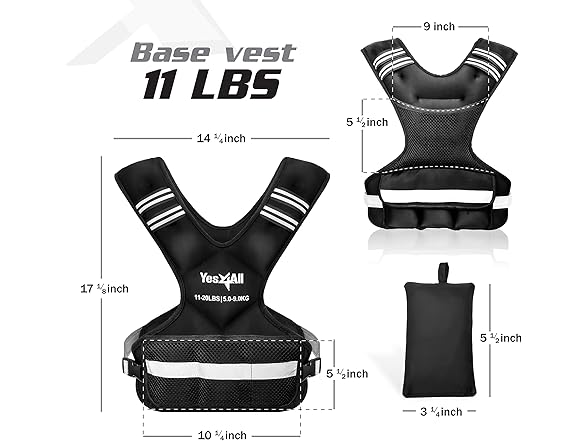 Yes4All Adjustable Weighted Vest 11-20lbs with Reflective Strip, Large Weight Vest for Strength Training for Men & Women
