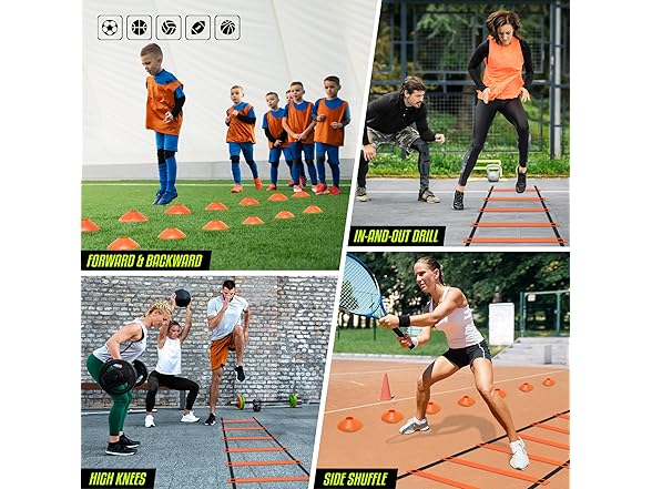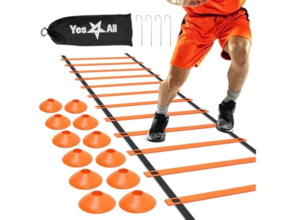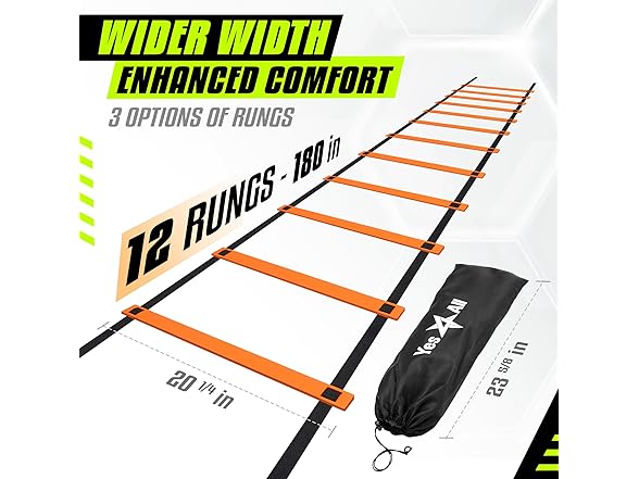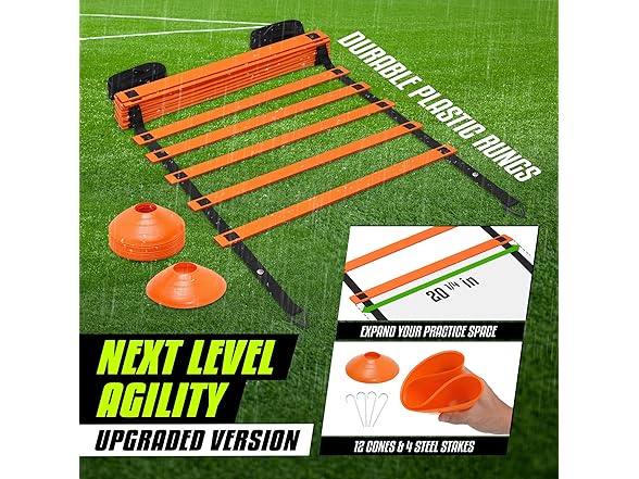 - IDEAL SIZE WITH 12 DURABLE PLASTIC RUNGS DESIGN: Our sport agility ladder is also called soccer ladder with adjustable nylon straps suits various drills & levels; Our football ladder is ideal for agility workouts, & football ladder drills