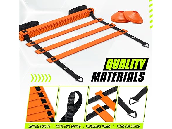 - HEAVY DUTY AGILITY LADDER: Exercise ladder for agility drills is designed for heavy-duty use, featuring durable nylon & sturdy plastic rungs; This speed training equipment is ideal for physical exercise or ladder training, to control speed & coordination