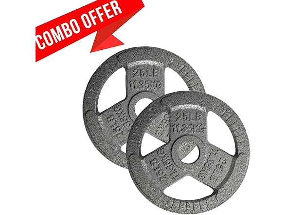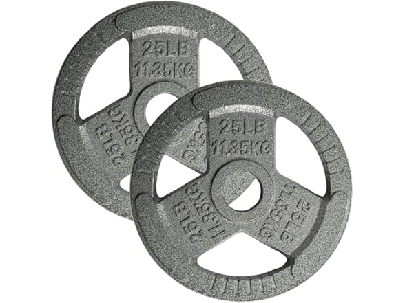 Yes4All Tri-Grip Handles Olympic Weight Plates/Cast Iron Weight Plates, Suitable for Barbell Exercises, Strength, Flexibility Training - 25lbs (Pair)