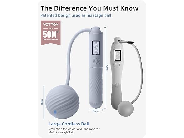 YOTTOY Skipping Ropes - Cordless Counter Jump Rope with Large Cordless Ball-Weighted Jump Rope for Women with LCD Display
