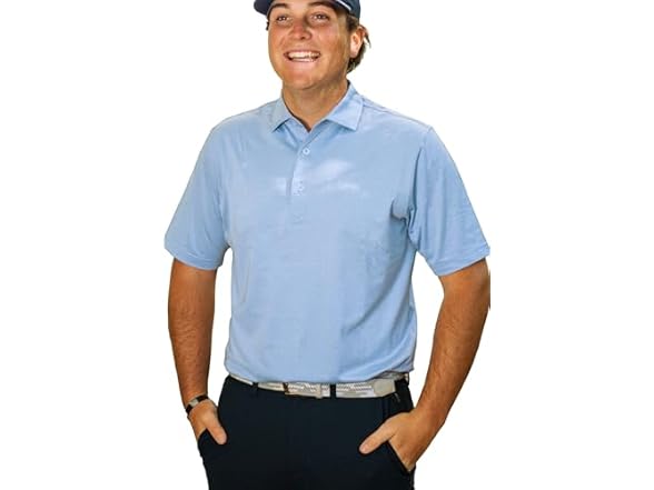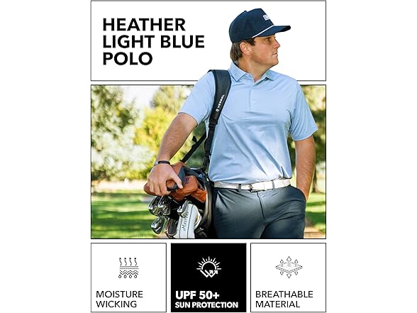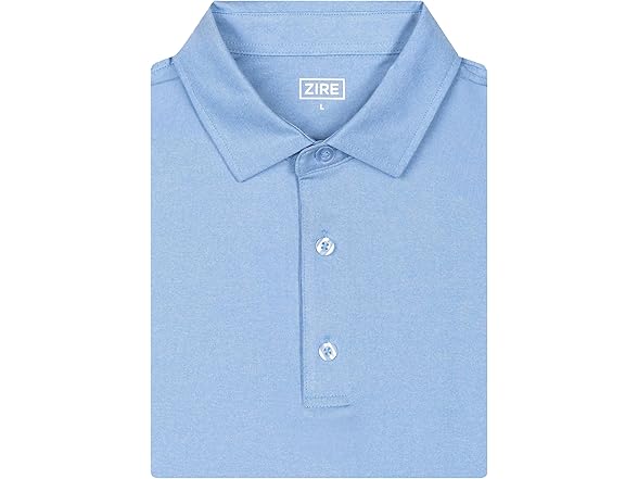 ZIRE Golf Men's Performance Polo | Dry Fit Short Sleeve Shirt | Moisture-Wicking Golf Shirt for Men | UPF 50+ | 4-Way Stretch | Heather Light Blue - Large