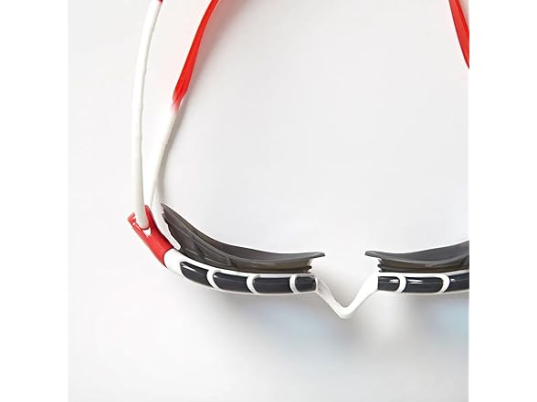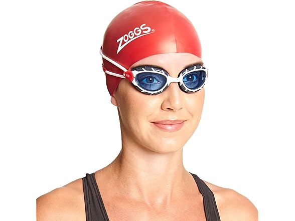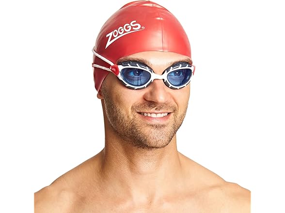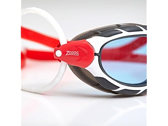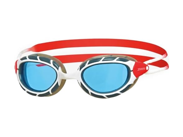 Zoggs Unisex Adult Predator Adjustable Swimming Goggles w/Comfortable Ultra-Fit Gasket & Anti-Fog UV Protective Curve Lenses, White/Red - Tint Blue Lenses, Regular