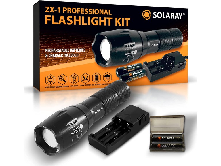 So, I'm kind of a flashlight geek. Maybe not geek, I don't obsessive over figures, but really care about quality and reliability. My primary brands are Surefire and Streamlight. Both have what they call 'dual-fuel' flashlights, capable of running on replaceable batteries or a rechargeable battery. My Surefires and Streamlights do not have this feature, and the Salary ZX-1 Tactical Flashlight looked a comparable product. Let's get this out of the way, this flashlight is not in the same category as Surefire or Streamlight, they're just not. They are also not priced the same. Those other flashlights command a premium. Initial impressions were very good. The packaging was nicely done. I'm not an unboxing-type person, but when care is put into packaging, care is often put into what's inside the packaging. The box the flashlight and supporting parts was in was nicely made and held closed with magnets. The package includes the flashlight and several accessories. Besides the flashlight it has two rechargeable batteries, a plug-in charger than can charge one or two at a time, two extra cap gaskets, a battery proxy that accepts three AAA batteries in lieu of a rechargeable battery, a sleeve for the battery inside the flashlight, and a plastic container to hold the batteries. It's honestly a lot. I'd have preferred the battery charging be done via USB-C connection to the flashlight itself. It is good to have two batteries, but requires more equipment than should be necessary for a flashlight. Performance, the flashlight has a bright, dim, strobe, and emergency flashing mode. In the frequently used bright and dim the performance is good. Not exceptional, but good. A feature I do like the ability to tighten or widen the beam with a sliding mechanism. The battery life seems pretty good. After charging I used for 30-minutes continuous on bright setting and it didn't visibly diminish in output. The head of the flashlight is cut to provide defense if needed as a weapon. It's a bit larger and heavier than my other flashlights, but otherwise is nicely shaped and weighted. It will be interesting to see how durable it proves itself over time. I've bought some budget flashlights on Amazon over the years, and out of the box they worked well. However, over time, they all failed. I value consistent and enduring performance. With Surefire and Streamlight I know I've got to-hell-and-back reliability. I did once have a Surefire have a failure in the cap and they serviced it and returned for free as part of their lifetime commitment. So, this is not to same standard as those other names. However, it also costs less. The thing is, it's not that much less. At its current price of $50 you've got the Streamlight 88061 ProTac 1L-1AA 350-Lumen Dual Fuel Professional Tactical Light for less, and arguably a more established reputation. Perhaps Solaray will eventually stand next to Surefire and Steamlight, but if it were my money, I'd choose the Streamlight 88061 and spend the small saving on some spare CR123A batteries.